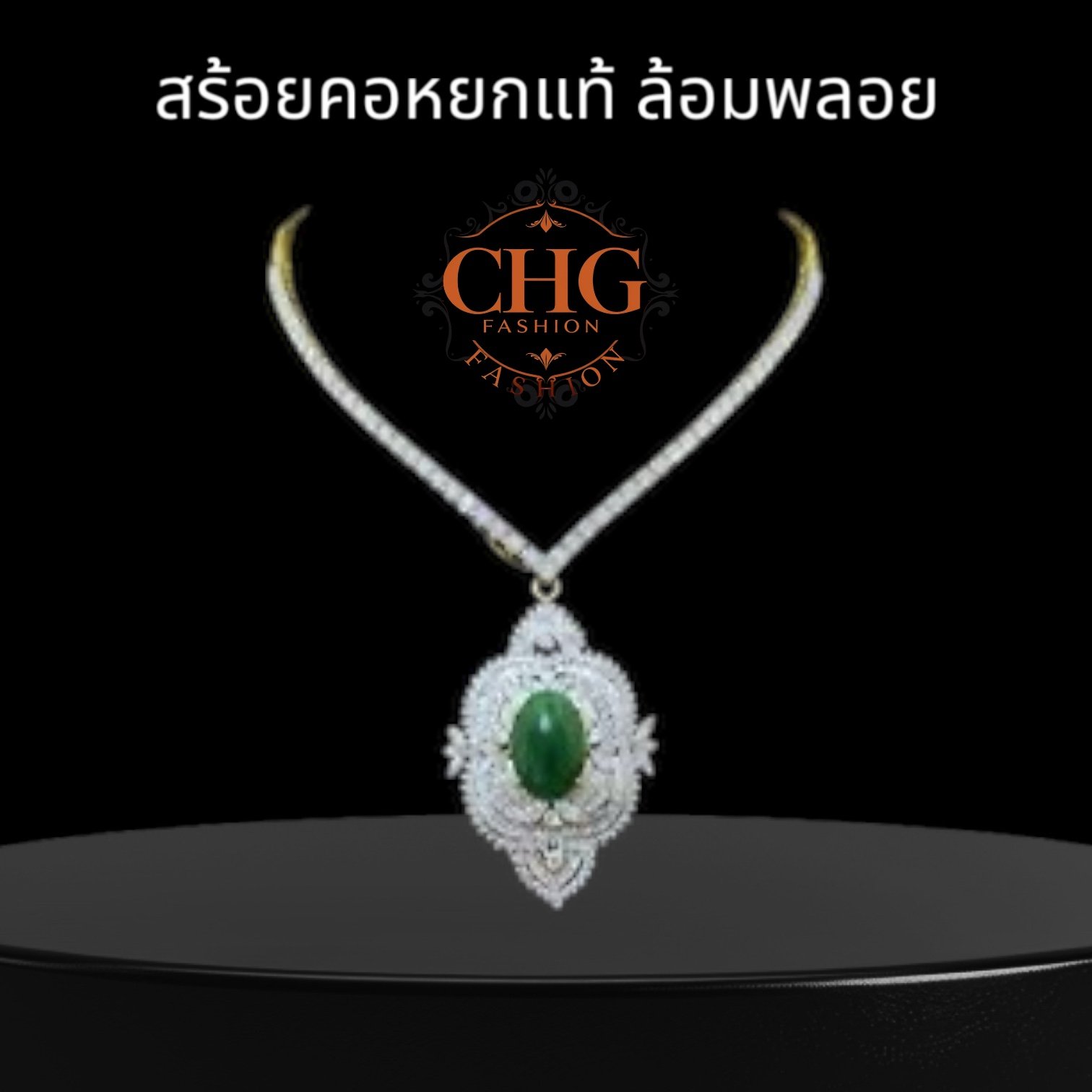 สร้อยคอหยกแท้ ล้อมพลอย